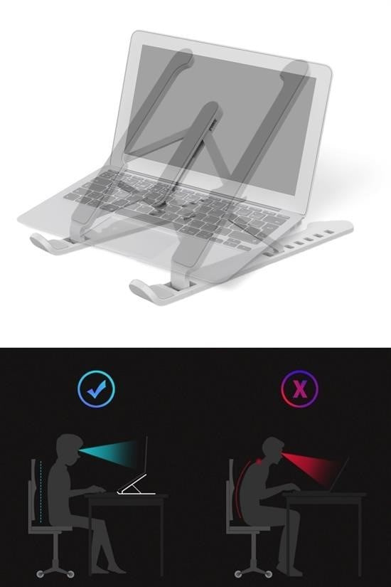 Boyun ve sırt ağrılarınızı azaltmaya yardımcı olan Ayarlanabilir Katlanabilir Laptop Yükseltici, ergonomik tasarımıyla her ortamda konforlu kullanım sunar.